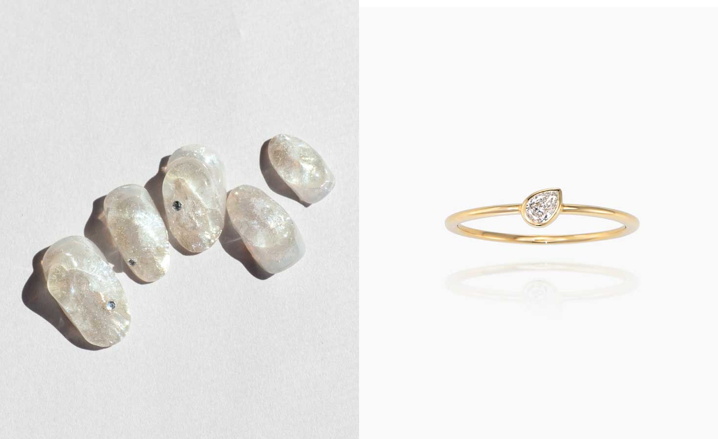 The attractive shape and color are reminiscent of a pear-shaped diamond. The appearance changes depending on the angle and the way the light hits it, making it a captivating piece for your fingertips.
