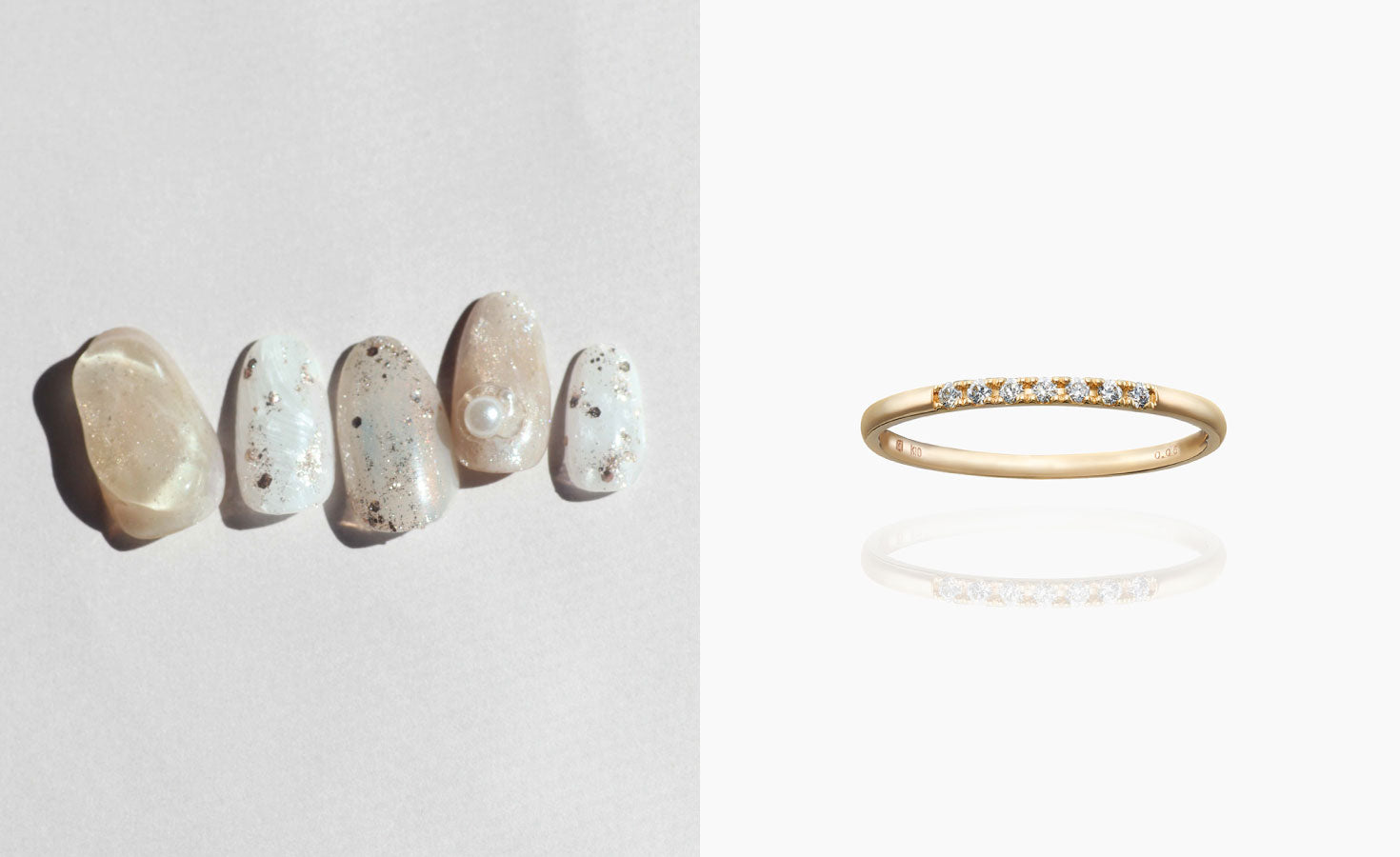 The glitter, which is inspired by the well-balanced sparkle of the base metal and diamonds, adds sparkle to your fingertips, and the soft color that makes Moses' fingers feel smooth matches any fashion.