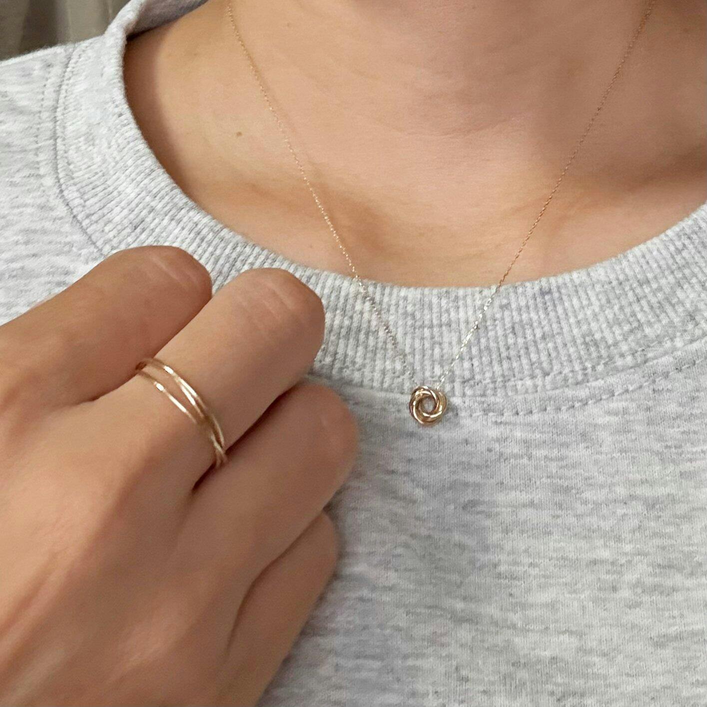 たまたまSNSでモナトリエさんがおすすめされていたのを拝見し、華奢な3連とK10のやわらかい色合いに一目惚れしました。