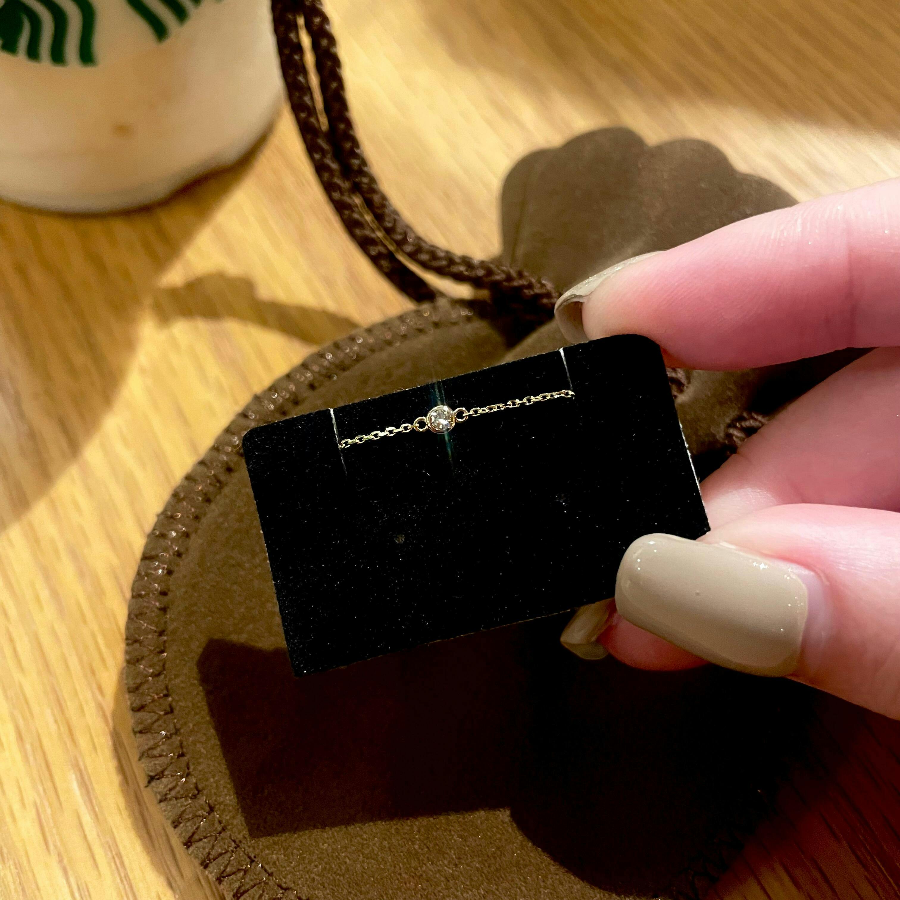 つけてみるとダイヤがキラキラしてとってもテンションが上がります!ピンクゴールド自体もピンクピンクしすぎておらず、どんな肌色、アクセサリーにも合うと思います。