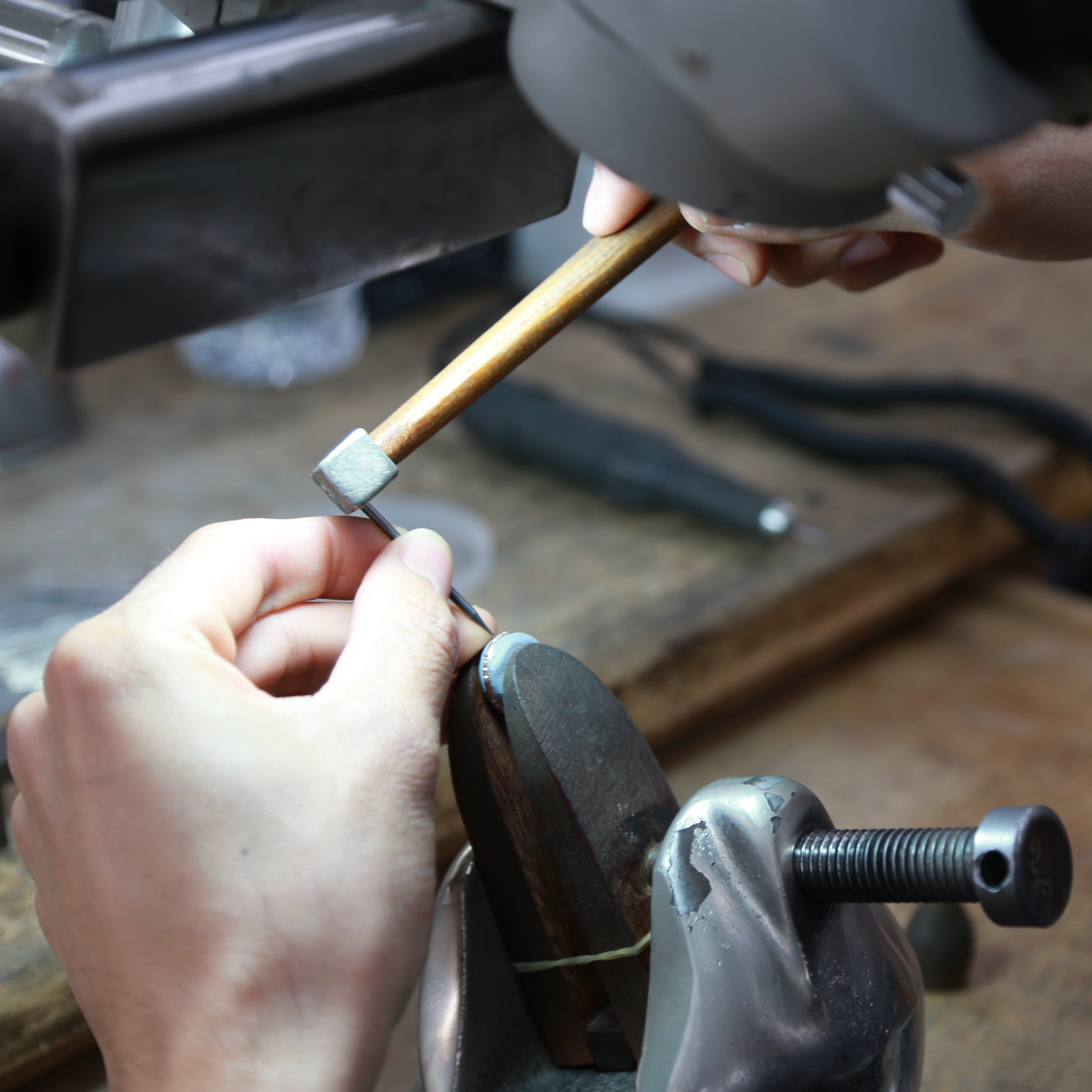 ダイヤモンドを使用したすべてのジュエリーに、同じ基準で石留めを行っています。