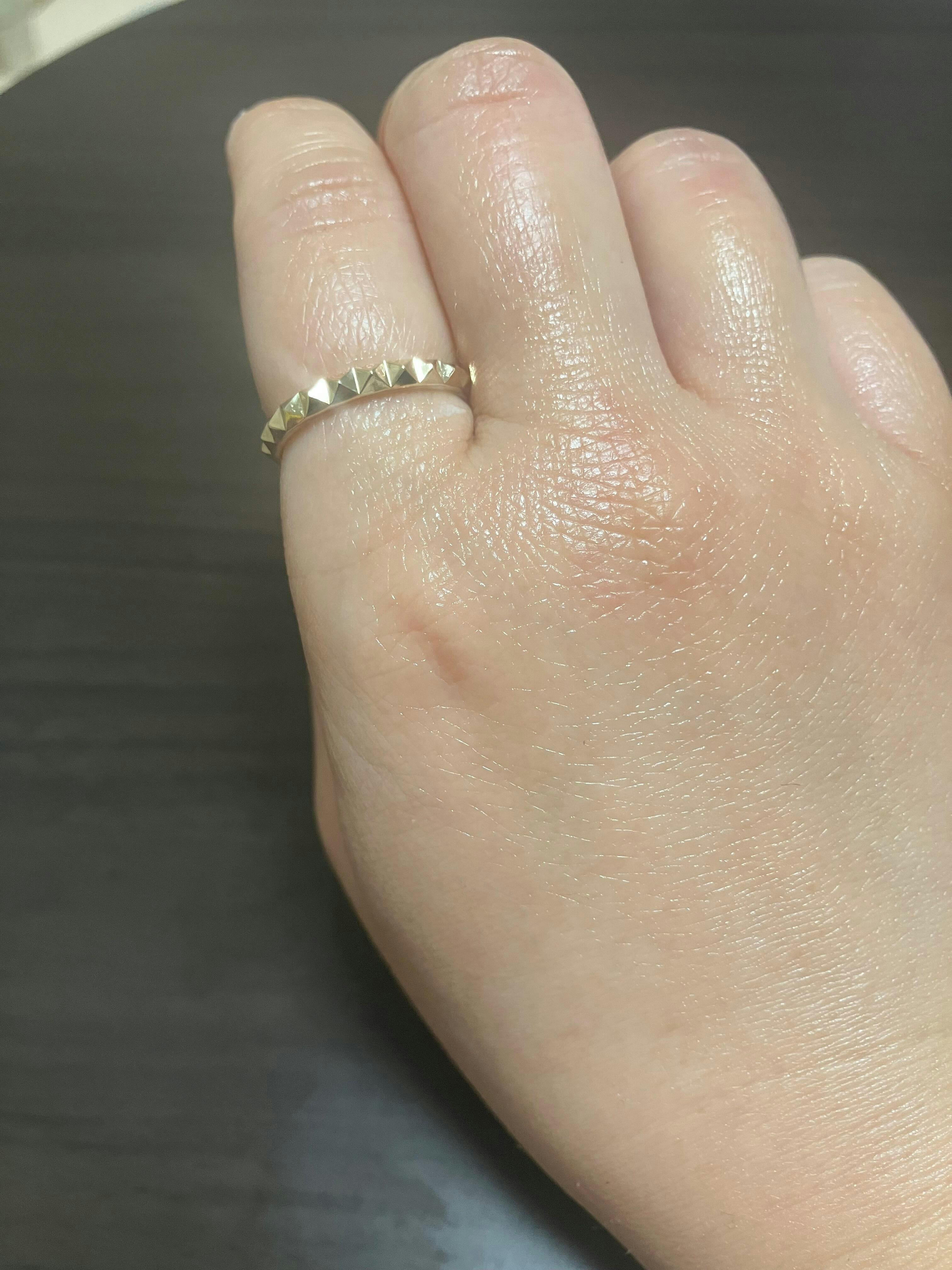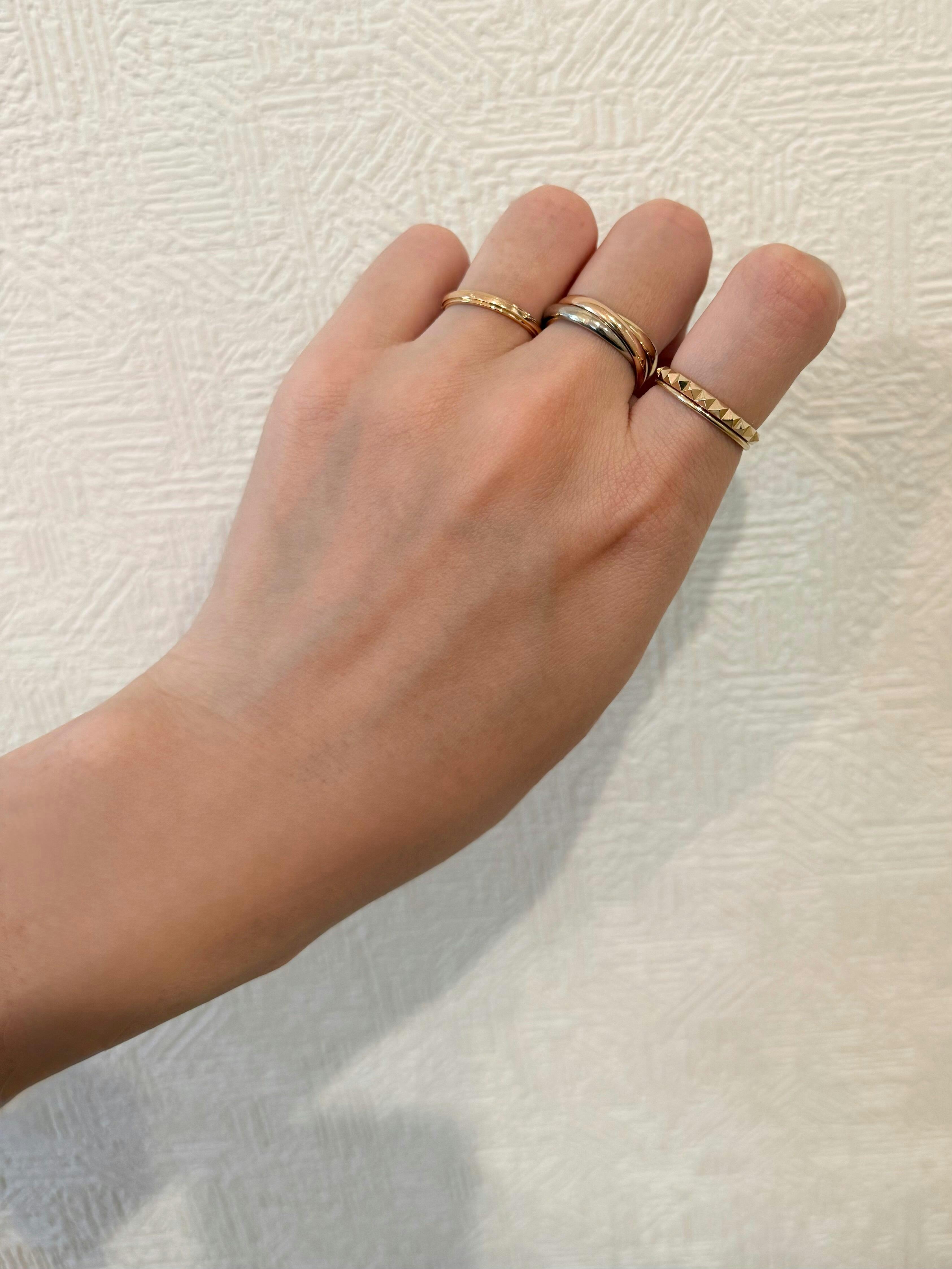 A cool design "Studs Ring" This ring is a solid volume full of protagonists. As a stacking ring, it is also an accent of the usual coordination. There is no stud at the bottom of the ring, so it is a smooth finger. It is a ring that is hard to deform because it uses high hardness original K10 luxuriously.