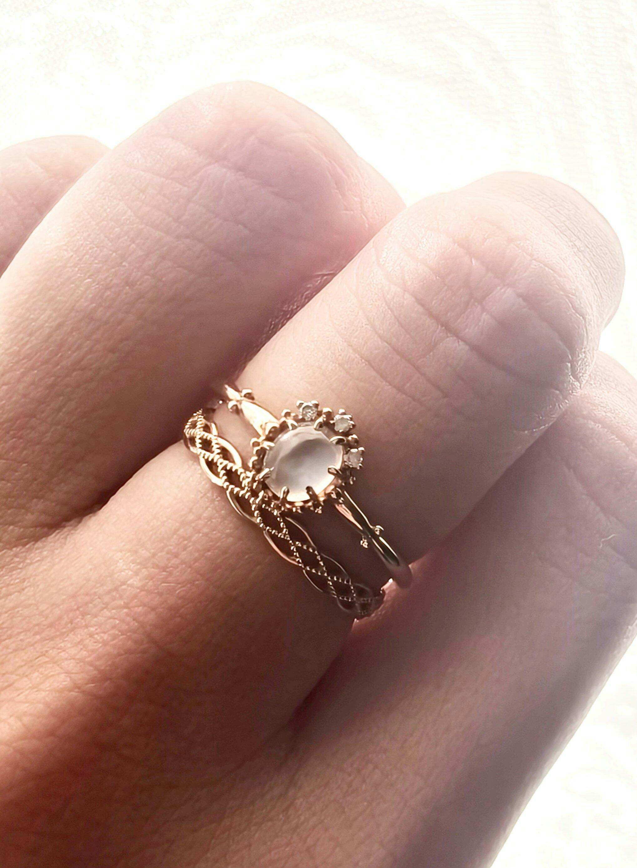 A delicate design with the delicate ring of antique motifs, Rococo. The braid -like line creates a sense of volume and demonstrates its presence as a protagonist ring. The bullion is a ring that is hard to deform and easy to use because it is an original K10 with high hardness.