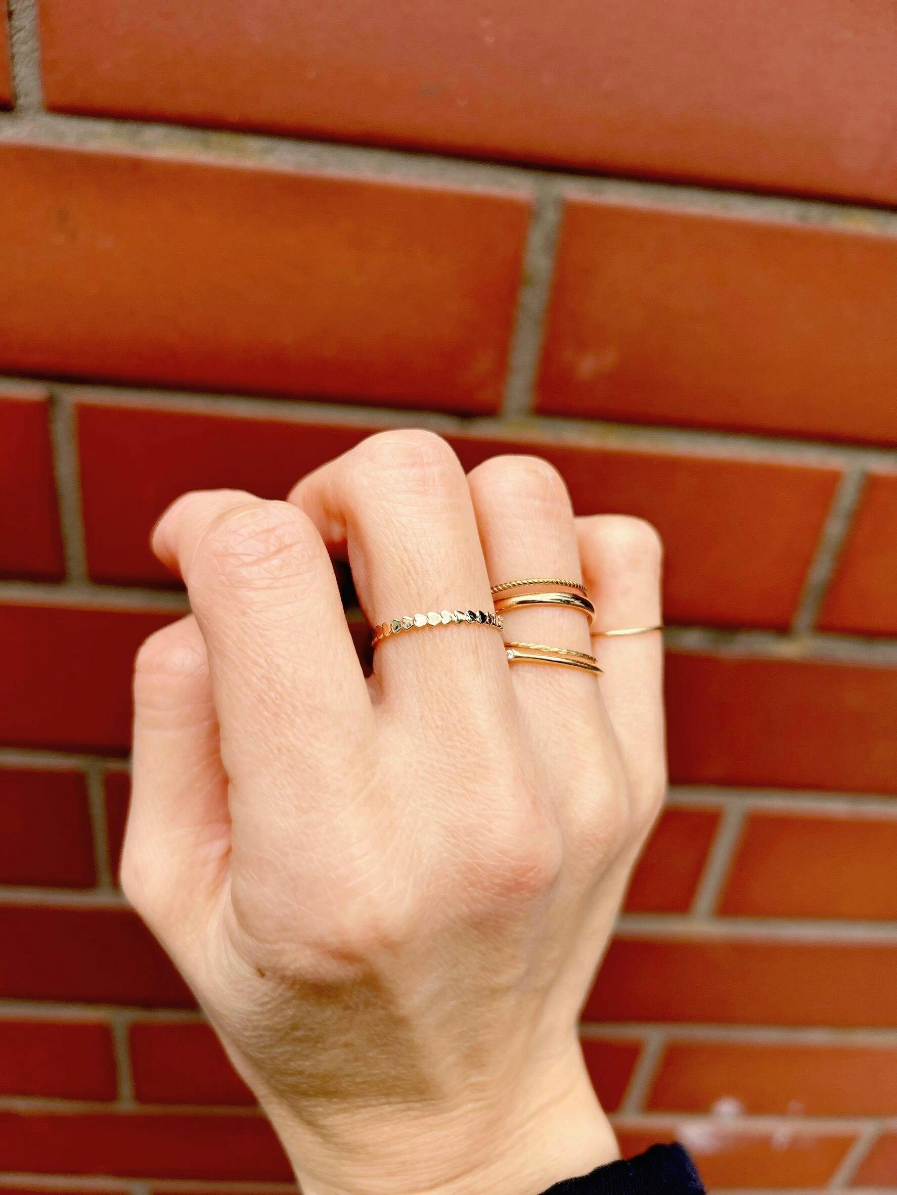 複数のリングとのレイヤードに、アクセントとして取り入れたいデザイン。