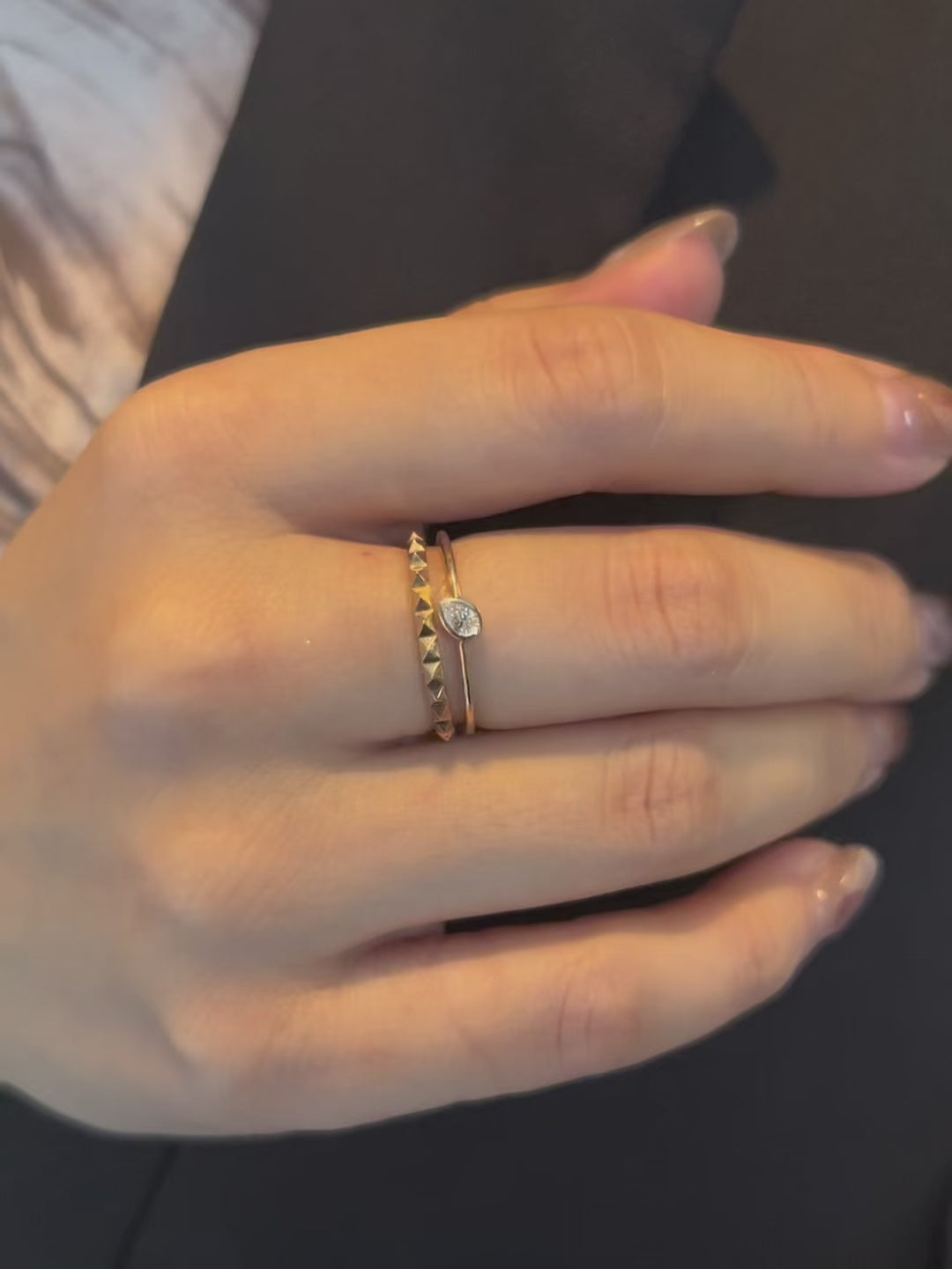 指元をすっきりとみせるペアシェイプがポイントです。