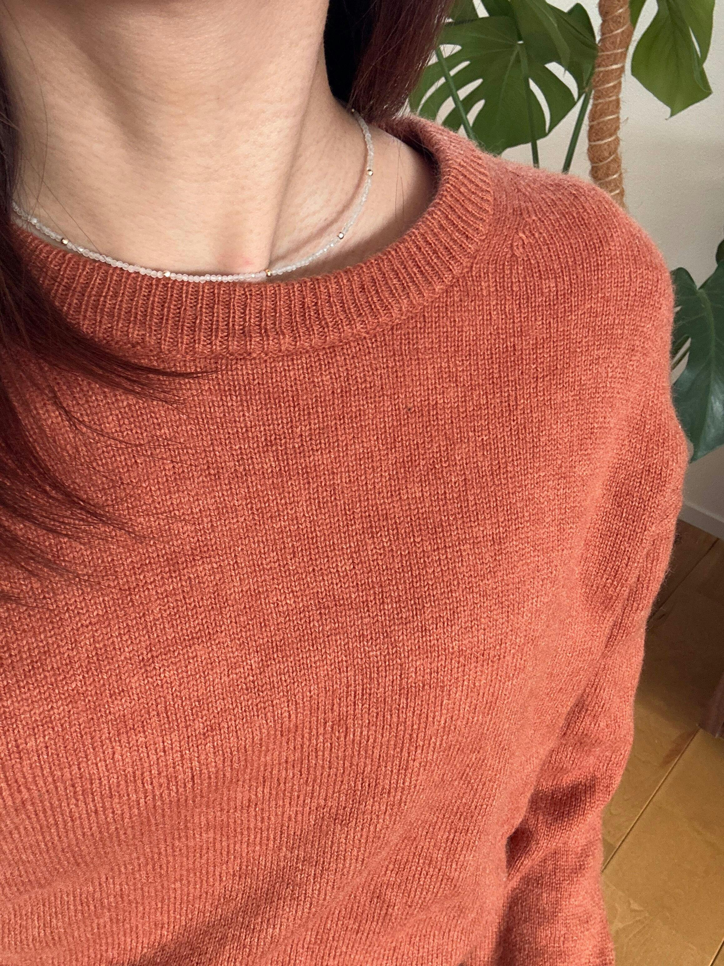 キラキラしていて、さりげないけれど存在感があってとても綺麗です。首の太さもあるかもしれないですが、2連がねじれて1連になってしまうので、アジャスターで少し長くして使用してみようと思っています。夏も冬も季節問わずたくさんつけたいです!