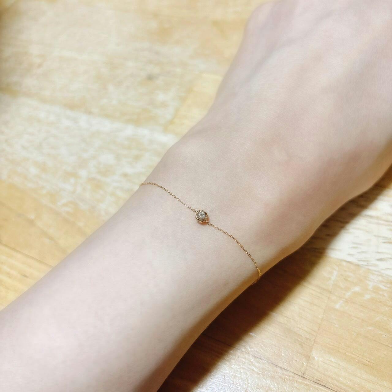 遠目で見るとダイヤの一粒石のシンプルなブレスレットですが、近づいて見るとお花のような精巧な作りに驚かされます。