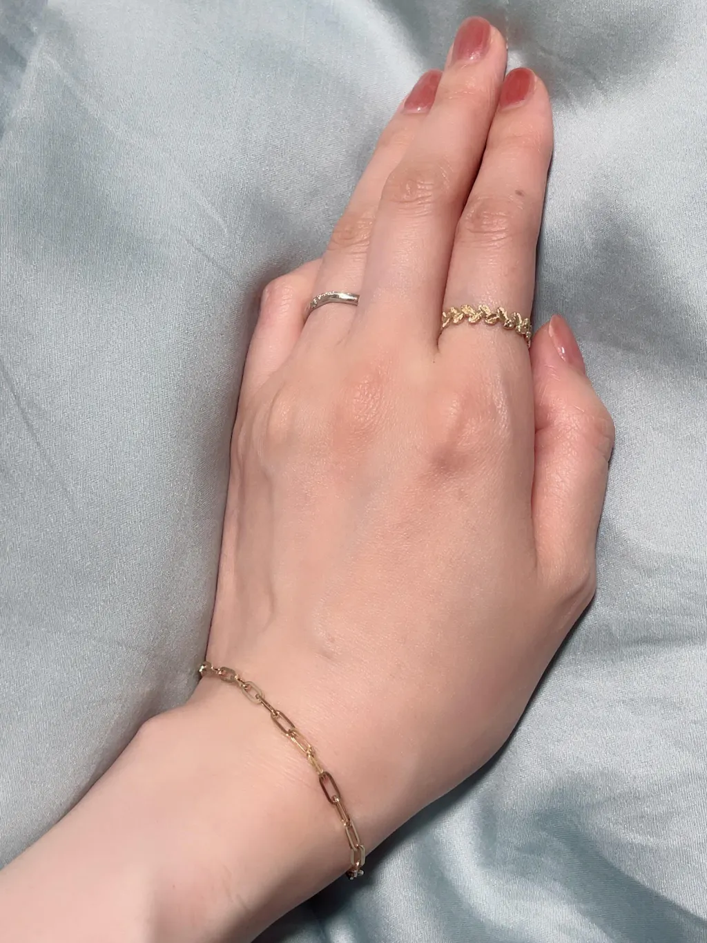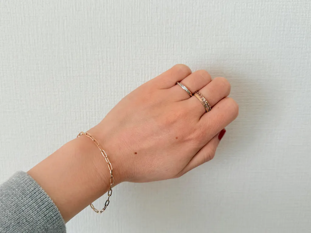シンプルなデザインながら、個性のあるチェーンを使用したブレスレット。