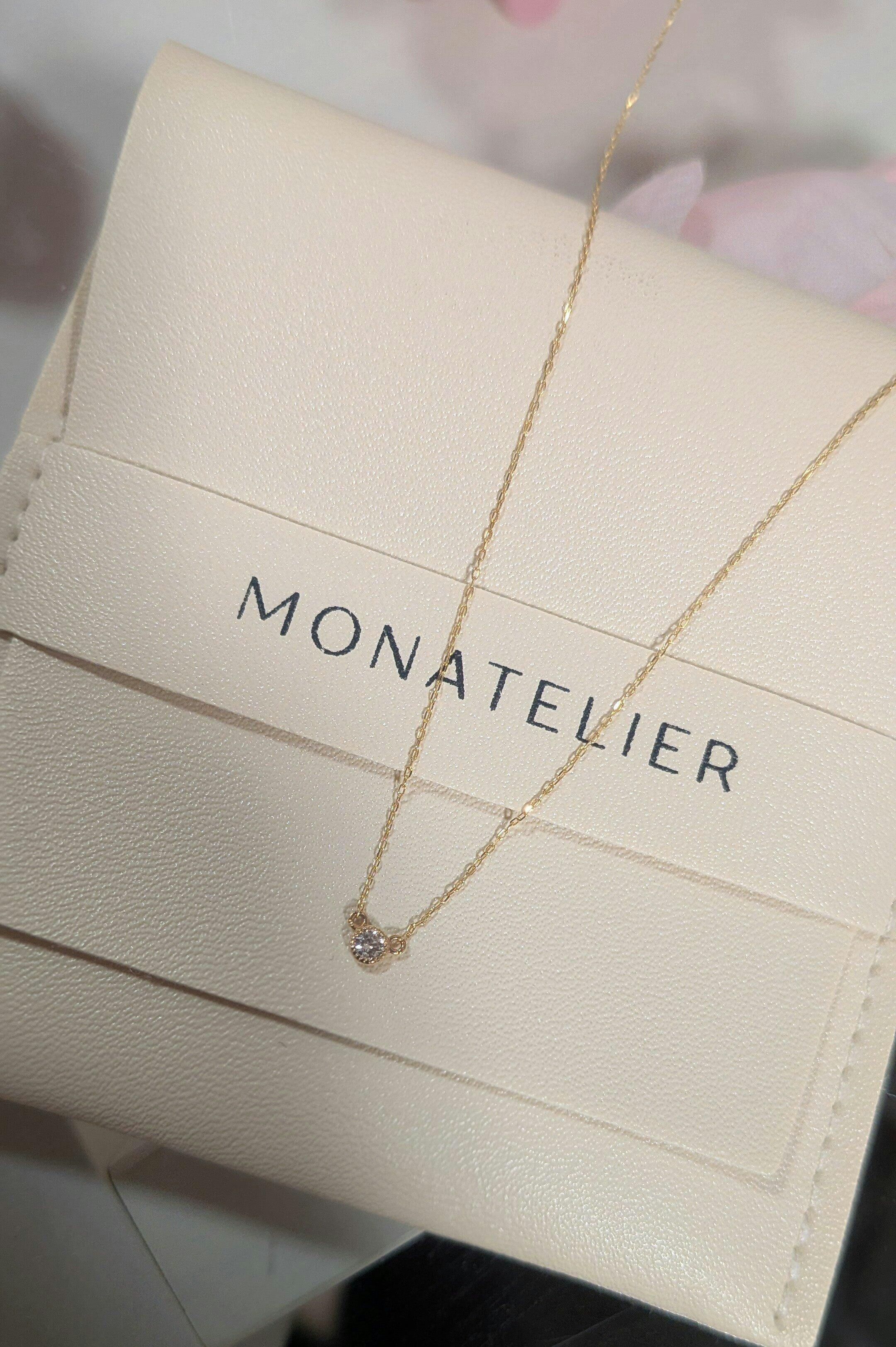 ダイヤの周りにミル打ちが施された、一粒ダイヤネックレス。