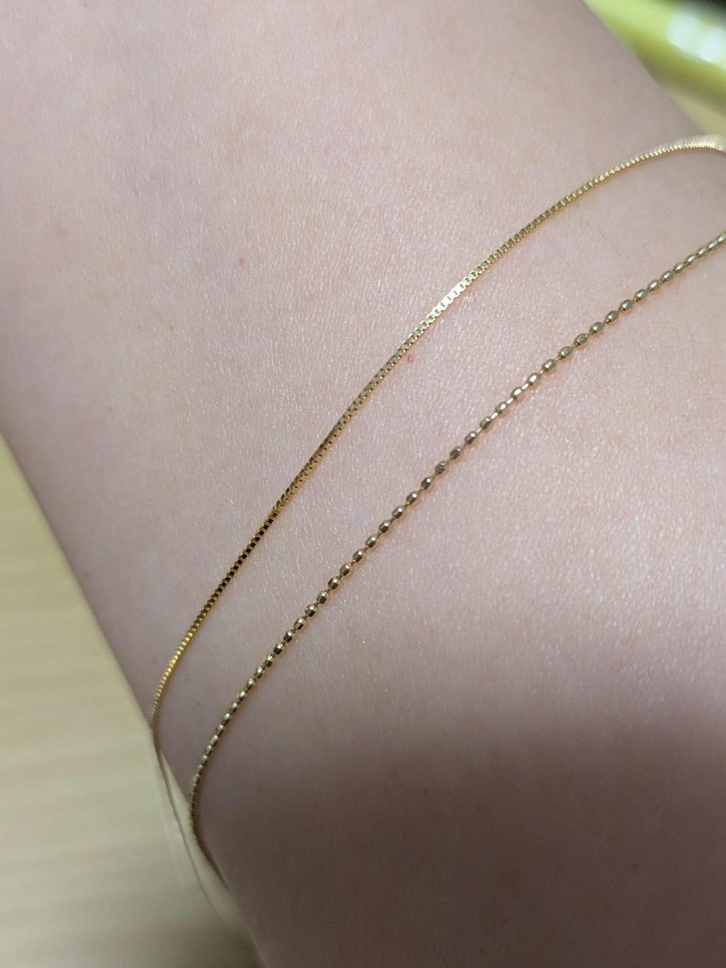 他のチェーンと比べて、チェーン同士が絡まりづらいので重ね付けにも。